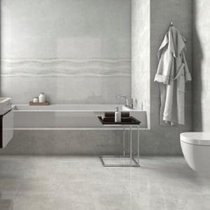 Gray glazed marble tiles are used for porcelain walls