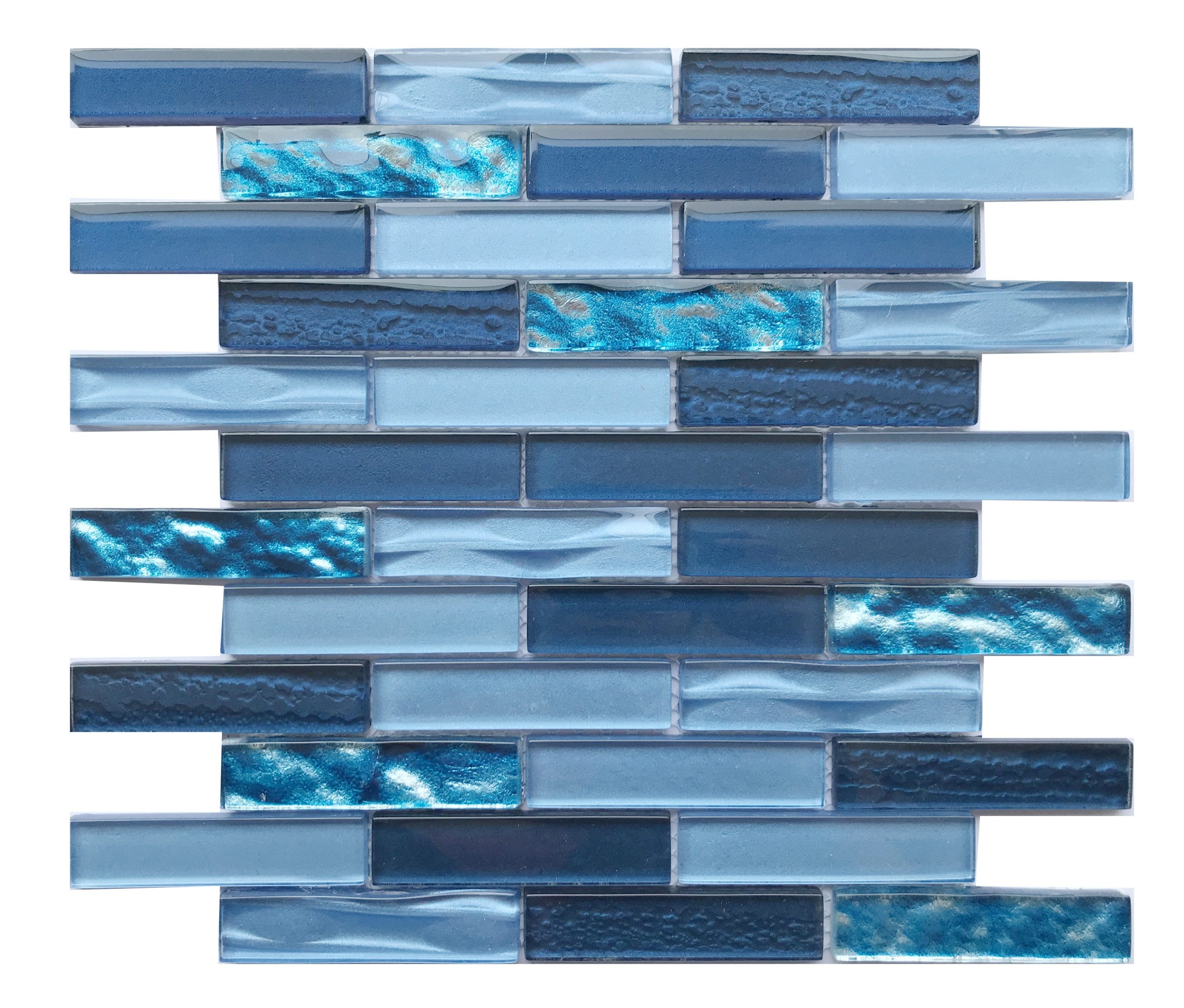 Custom Indoor Decor Blue Glass Mixed Mosaic Tiles